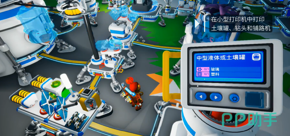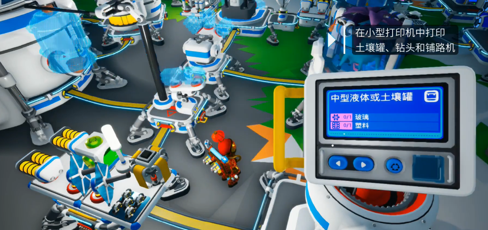 铺路机无法单独运作,必须依托漫游车作为载具平台,并与钻头、土壤罐、发电机共同构成完整作业链。制作该设备需通过工作台或3D打印机完成,所需材料包括铝合金、硅、铁氧体粉末、铜矿石及电路板,均需通过野外采集矿石后经提炼合成获得。