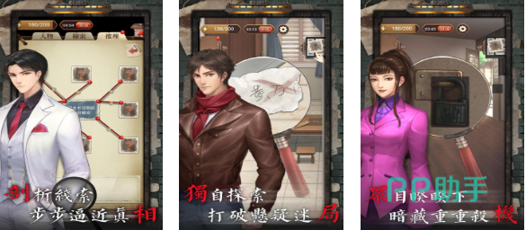 这是款加入了些许国风元素的推理探案单机游戏,上世纪上海滩的案件场景令人印象深刻,还为大家刻画了极为丰富的剧情可以探索,隐藏在细节中的各种线索可搭配解谜,各种有趣道具的加持让解谜流程更为快速,多样的案件现场和嫌疑人也使人眼花缭乱,灵活利用各种线索揭开谜题的过程代入感拉满,各位侦探爱好者在这个解谜手游中破解案件吧。
