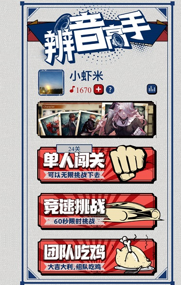 在这款游戏中,玩家将遭遇各式各样的挑战难关,每当成功攻克一个挑战,都能收获满满的游戏奖赏。特别配备了辅助应答工具,让玩家在关键时刻能迅速做出准确反应,助力闯关。积分系统规则明确,谁能率先累积最高积分,谁就离胜利更近一筹。短暂的音乐片段,考验玩家的专注力与思维敏捷度。游戏操作简便易上手,只需跟随系统播放的旋律,即可轻松参与挑战,还有可爱的卡通画面等玩家来体验。