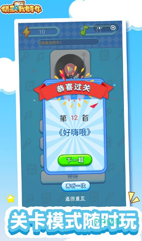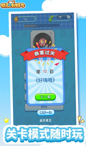 一款轻松有趣的猜歌挑战游戏,它以猜歌闯关为核心玩法,让玩家在游戏中沉浸于猜歌的乐趣之中。这里汇聚了丰富多样的歌曲,为玩家带来别具一格的答题闯关体验。游戏中,各类曲目轮番播放,考验玩家能否分辨出其中的不同曲目。众多歌曲标题正静候玩家的猜测,邀请玩家开启一场场精彩纷呈的挑战。尽情发散玩家的思维,展开一场场激烈的头脑风暴,看看玩家能否迅速猜出歌曲的名字。