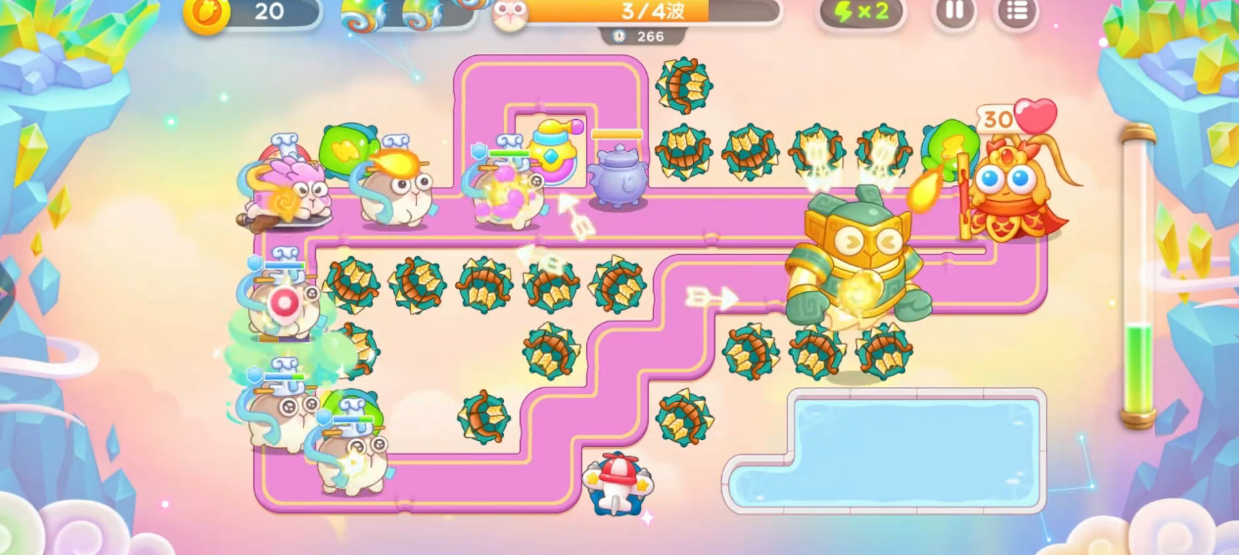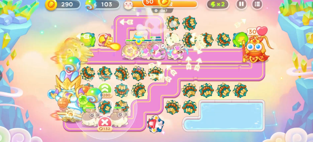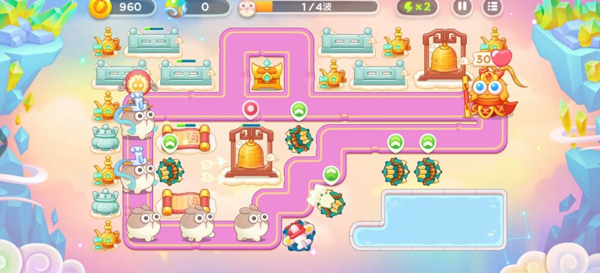 星君出现的同时,还会伴随重生兔与蛋类敌人。此时应优先处理后两者,防止其干扰主线输出节奏。中期阶段需围绕星君行进路线增设多个2级多重箭塔,并适时将其升至3级以提高输出密度。注意靠近萝卜出口的位置无需过度投资升塔,因使用频率较低。整体战斗过程中只要持续压制星君,压力相对可控。当仙女兔出现时需格外警惕,尤其是与战车兔同行的那只,必须第一时间锁定并击破,否则极有可能导致萝卜被啃食而失败。一旦清除所有仙女兔威胁,后续只需专注集火星君即可完成通关。