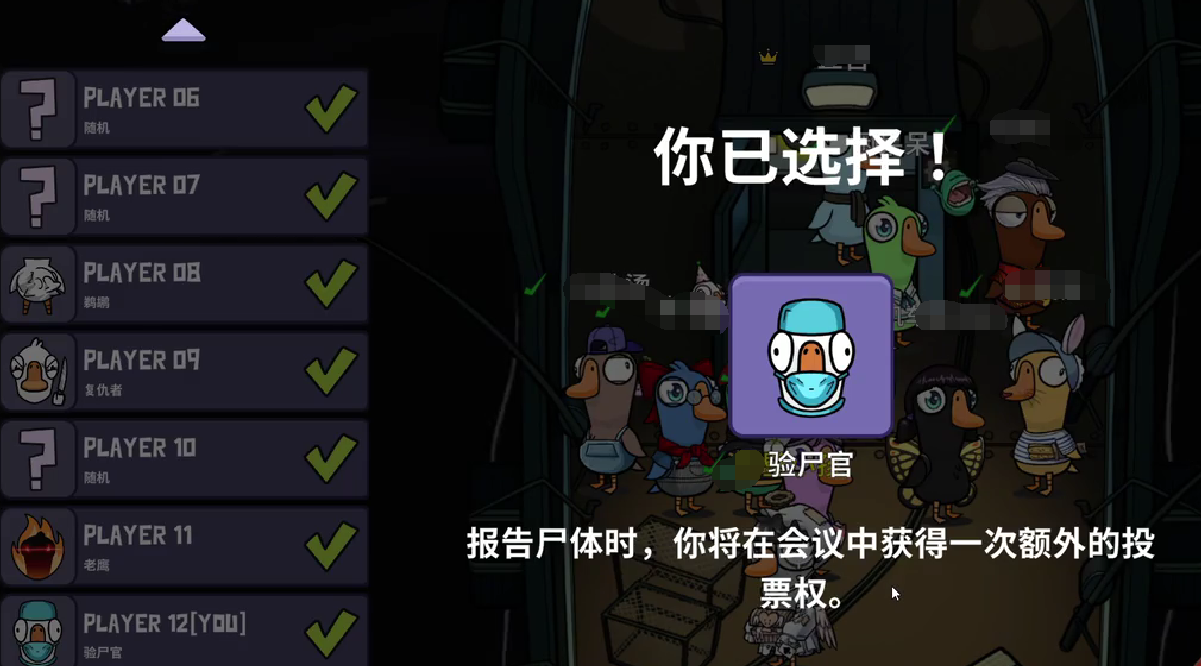 在游戏前期,验尸官应第一时间查验尸体并主动分享结果,以引导团队走向正确方向。然而,也需注意身份暴露的风险。一旦被鸭子阵营识别,极易成为优先清除目标。因此,在局势不明朗时,可采取伪装策略,例如假装自己是普通大鹅或扮演“加拿大鹅”角色,借此转移怀疑焦点,保障自身安全的同时继续为团队提供支持。