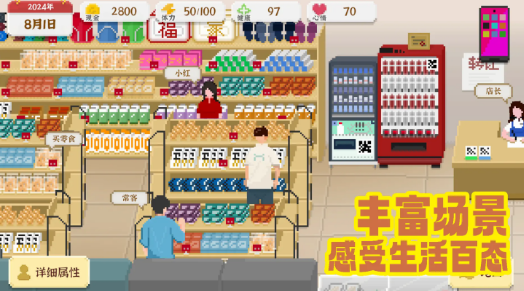 游戏引领玩家步入一个充满新奇剧情的虚拟世界,亲历丰富的人生篇章。游戏借助精致的画面与悠扬的音乐,精心编织出一个既真实又迷人的游戏空间。与游戏内的NPC建立联系,通过互动深化彼此的关系,探索不同选择引领的多样人生轨迹。游戏赋予玩家变换角色的自由,感受多元人生的魅力。高度自由的游戏机制,让玩家的每一步都决定着人生的方向。