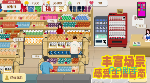 游戏以卡通渲染的手法呈现了一个充满想象力的世界,它以经典的经营模拟为核心,为玩家铺设了一条通往乐趣的道路。温暖人心的故事情节,带来治愈与共鸣。丰富的剧情脉络与多样的事件设计,不仅拓宽了游戏的深度,也极大地激发了玩家的探索欲与重复游玩的兴趣。玩家将作为引导者,帮助那位迷茫的毕业生一步步走出困境,找到好的工作,这段旅程既温馨又充满乐趣。