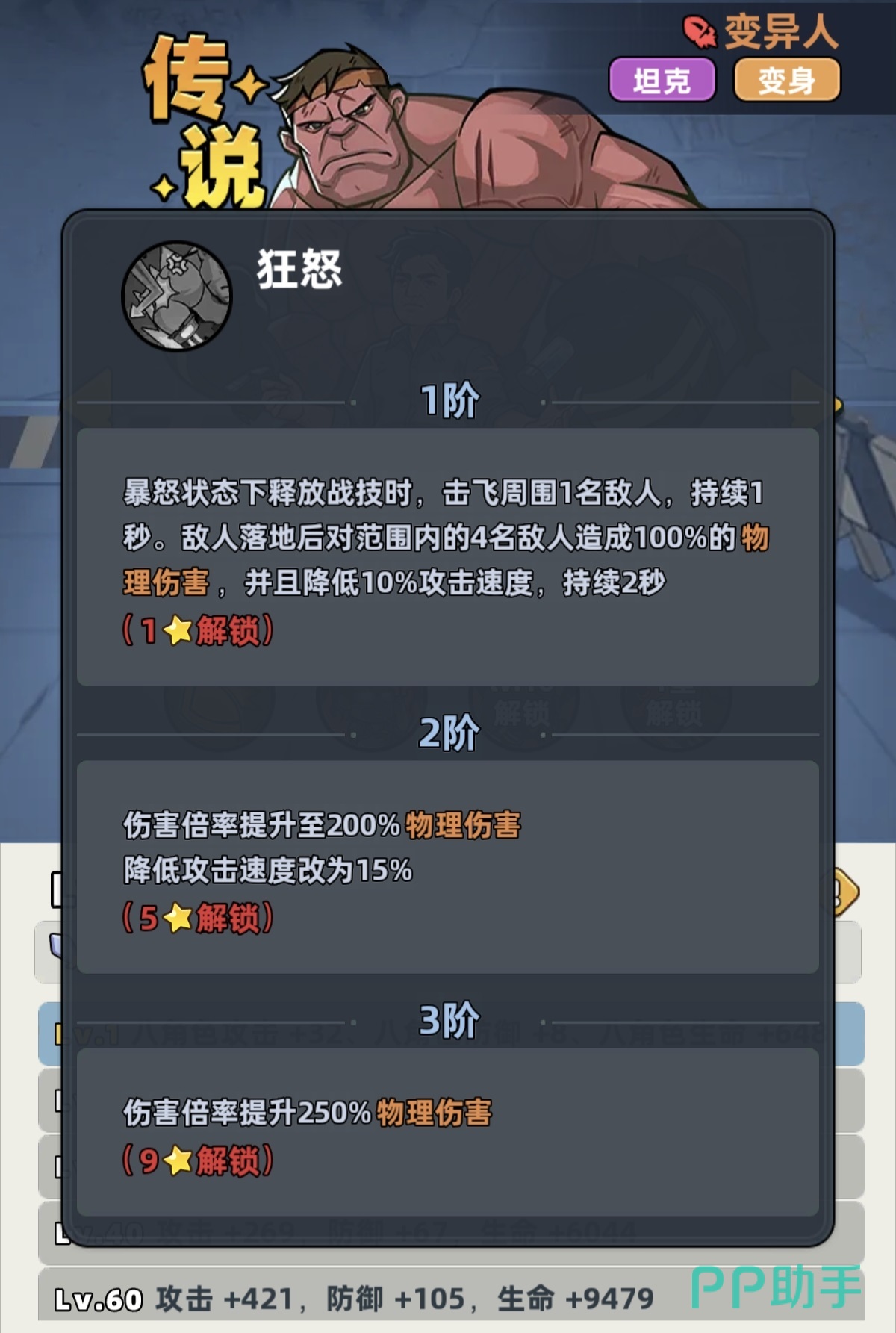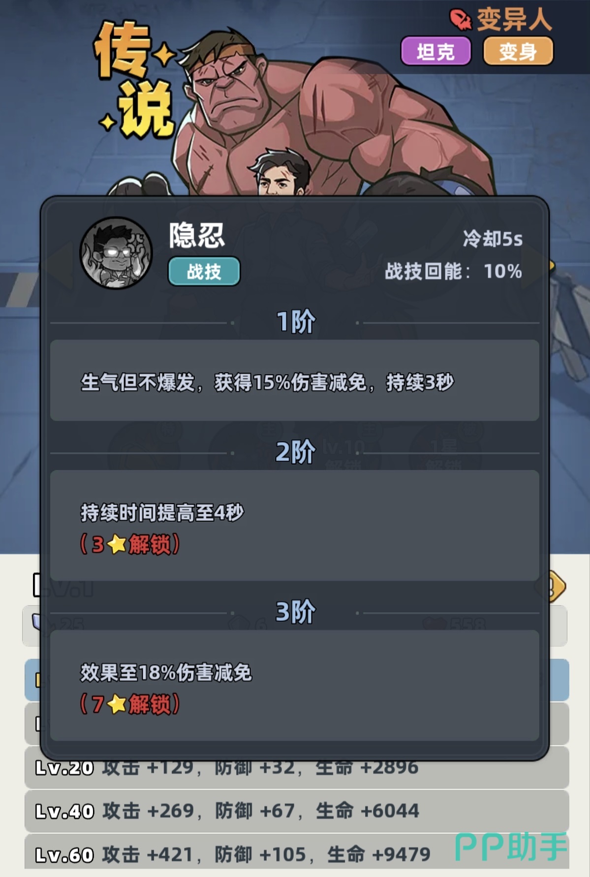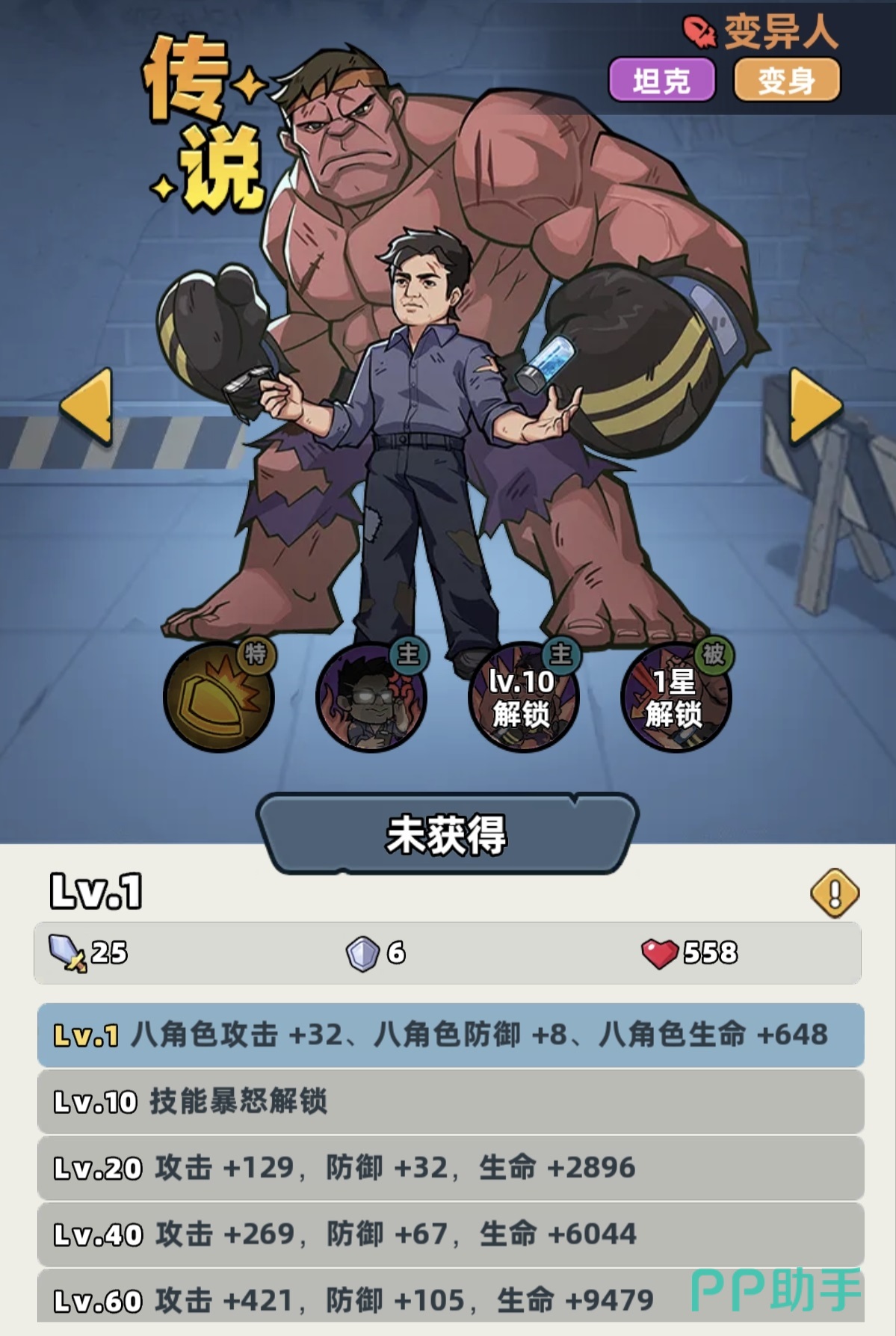 变异人定位为传说品质战士型角色,是当前版本中获取难度较低、泛用性极强的坦系单位。其核心机制包含两层防护体系:一是主动技能可即时触发全周期伤害减免效果;二是大招激活后进入变身状态,不仅提升基础生命值上限,还附带概率性伤害免疫、范围击飞及落地二次伤害,并同步降低敌方攻击速度。这一组合机制使其在单体承伤、前排控场与团队保护维度均具备明确战术价值。作为零氪及微氪用户的首选坦克,该角色可通过常规抽卡、活动任务或碎片合成稳定获取,无稀有资源绑定限制。