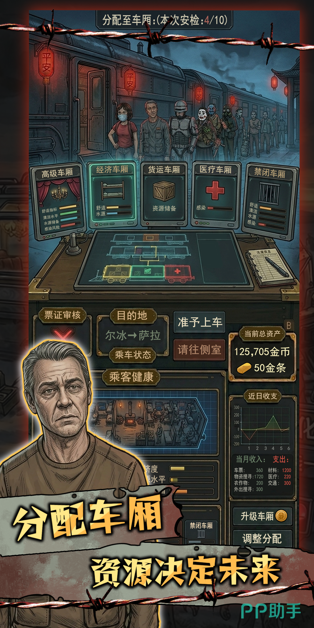 开局首务:确保列车具备基础续航能力。优先检查并补满燃料、净水、口粮与基础弹药四项核心补给;未达标前禁止发车。切勿在前期盲目扩展车厢数量——每增加一节车厢,都将同步提升燃料、食物及维护消耗,极易引发断供危机。应集中资源升级车头动力系统与防护装甲,保障行驶稳定性与突发撤离响应速度,为后续长途穿行打下安全基础。
