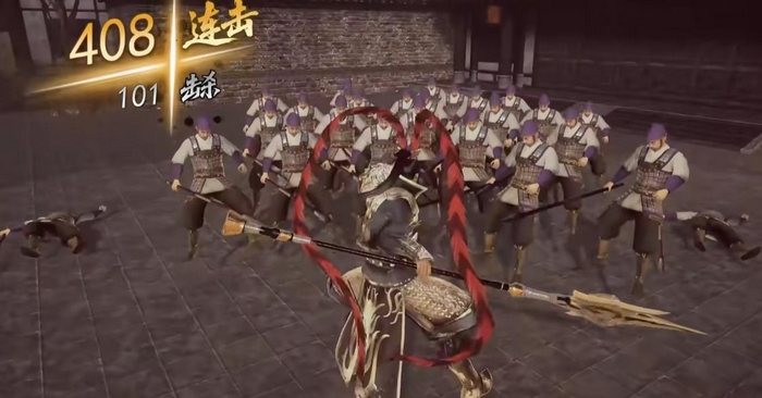 游戏采用全手动操作机制,支持百人同屏战斗,还原主机级打击感与战场沉浸感。核心玩法包含动态连段追击系统——依据敌人硬直状态、距离远近智能触发反击或位移追击;无双技具备多段判定与范围爆发效果,配合灵活闪避与弹反机制,实现攻防一体的高自由度战斗节奏。