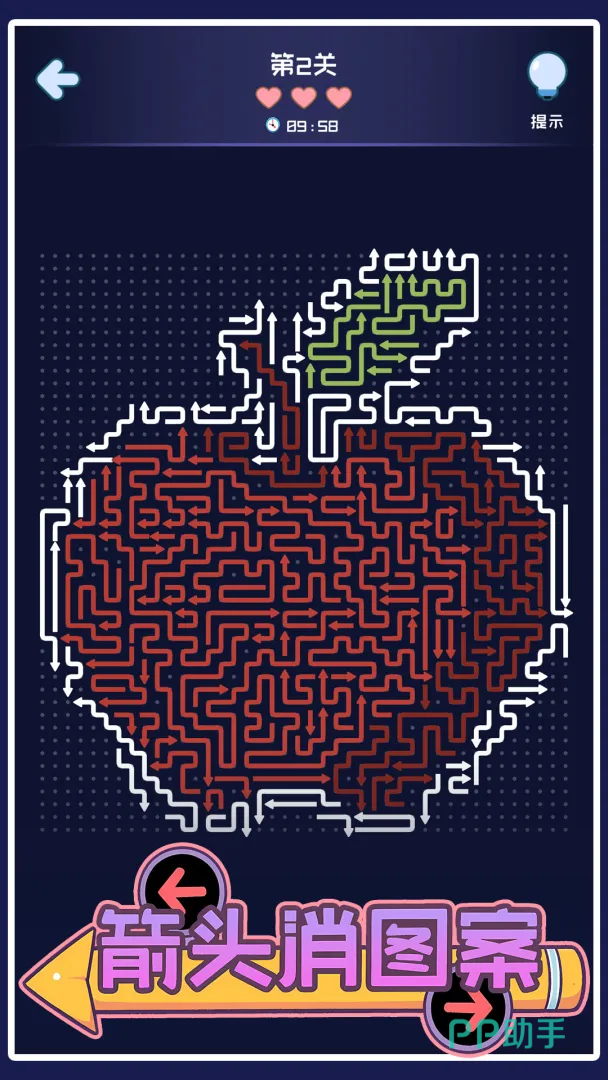 全游戏提供数百个独立关卡,每个关卡对应唯一图案结构,确保持续的新鲜感。随着进度推进,难度梯度提升明显——表现为箭头数量递增、初始排布更密集、可操作区域进一步收窄,有效维持挑战张力,避免重复疲劳。