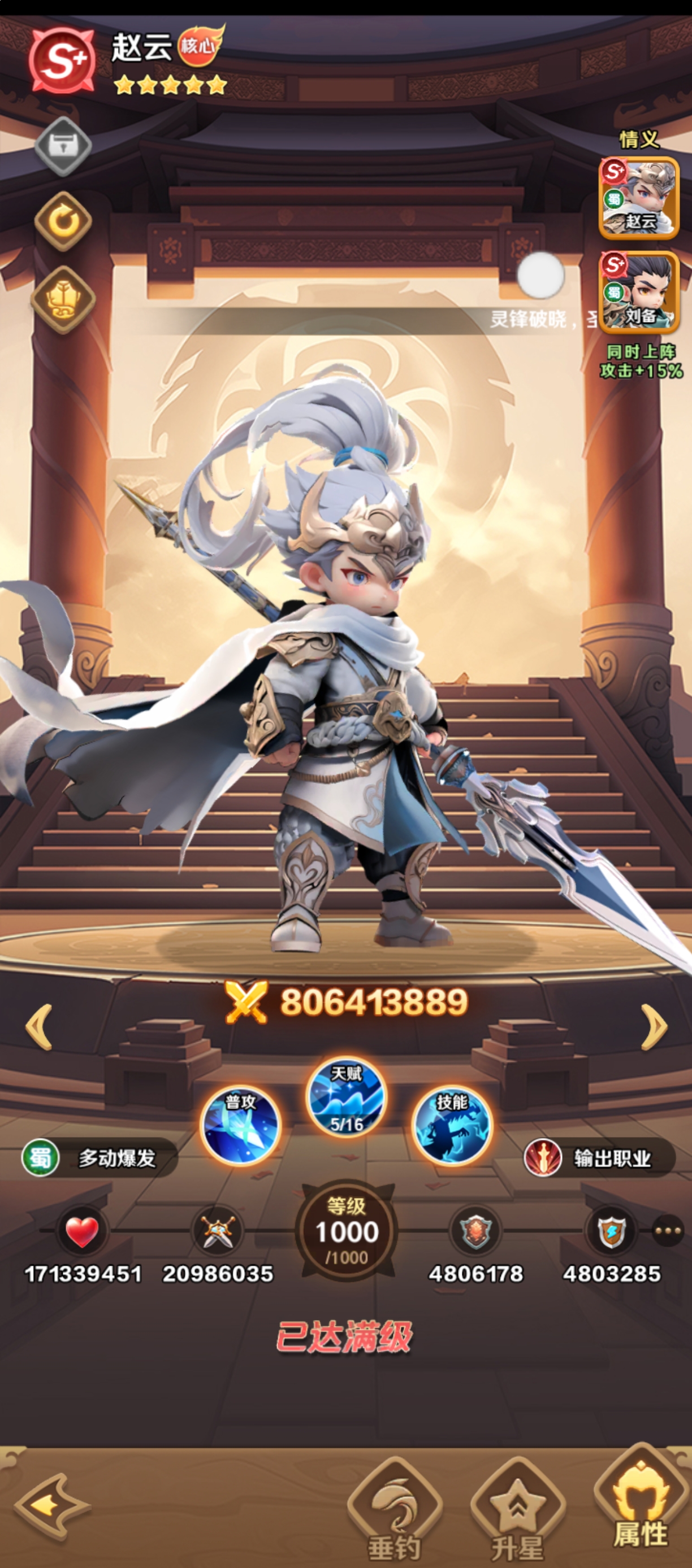 赵云是《巨神军师》前期最具泛用性的爆发型主力输出之一。其机制围绕“多动+龙胆叠加”展开,每次技能释放后可依据层数条件触发额外行动机会,形成高频输出节奏。在1000抽自选阶段,他能快速建立战力优势,无需复杂配队即可承担主C职能,尤其适合尚未积累大量资源的新手玩家稳定过渡前期关卡。