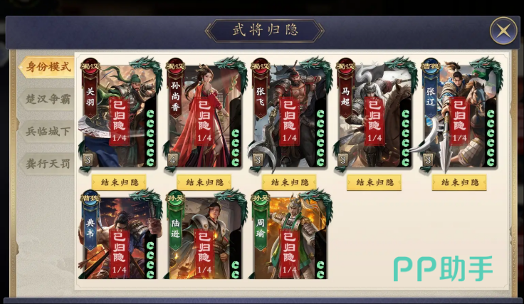 在《名将杀》这款策略卡牌对战游戏中,“归隐”是一项核心战术机制,直接影响玩家的生存节奏与阵容调度。不同属国武将的解锁进度,决定了可部署的战术体系——部分武将定位为持续输出型主C,而另一些则承担前期铺场、控场或资源转化职能。归隐并非被动技能,而是玩家基于实时战况主动触发的战略性规避手段,其本质是通过状态切换实现关键单位的生存保全。