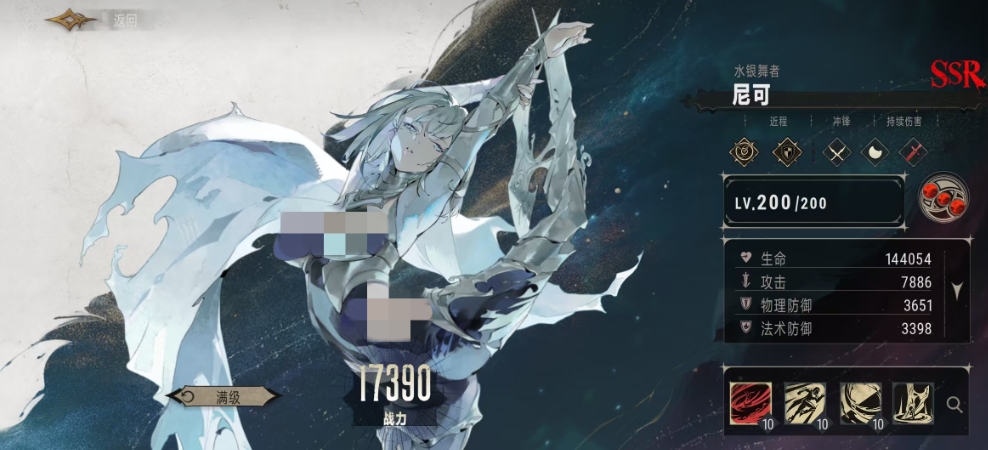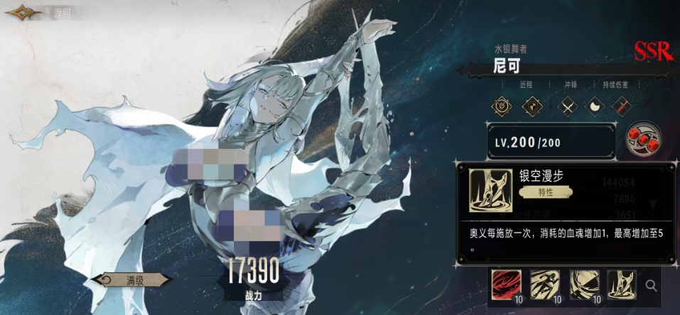 尼可是一位擅长近战攻击的角色,她的攻击距离虽短,但各项属性却极为均衡,作为教会阵营的一员,尼可身披残月之光,以靴刃为武器,对主目标造成128%攻击力的物理伤害,尼可的特性叫做银空漫步,每当她释放一次奥义技能,所消耗的血魂便会增加1,最高可增加至5,这一特性不仅提升了尼可的持续作战能力,还让她在战斗中能够更加灵活地穿梭于敌阵之间。