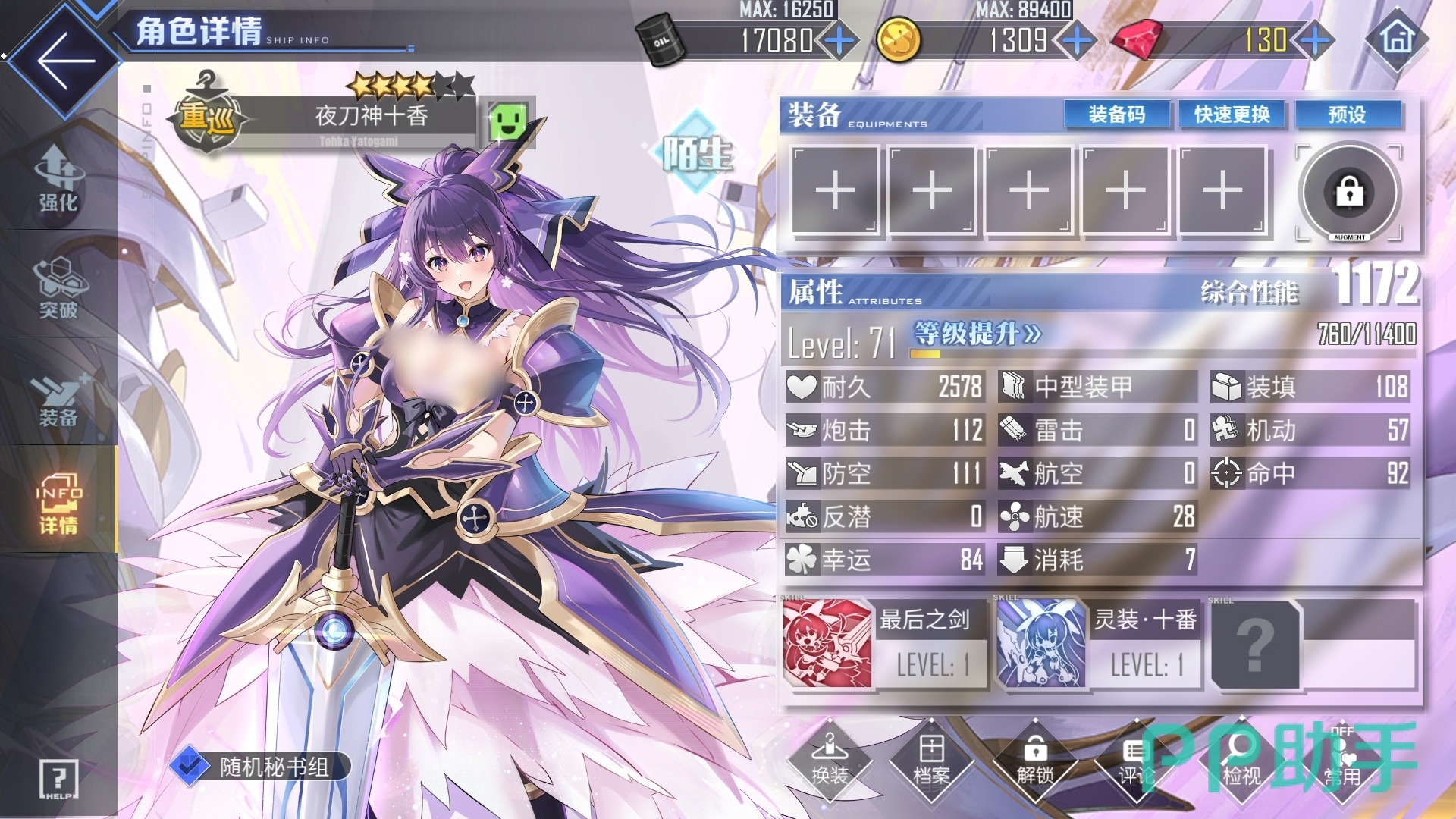 以上是碧蓝航线夜刀神十香怎么样的解析,各位可将夜刀神十神视为一艘功能性均衡的重巡来使用,而且她的自保能力很不错,也能对旗舰舰娘提供一定的保护,要是推关时生存压力较大,可安排夜刀神十香上阵。