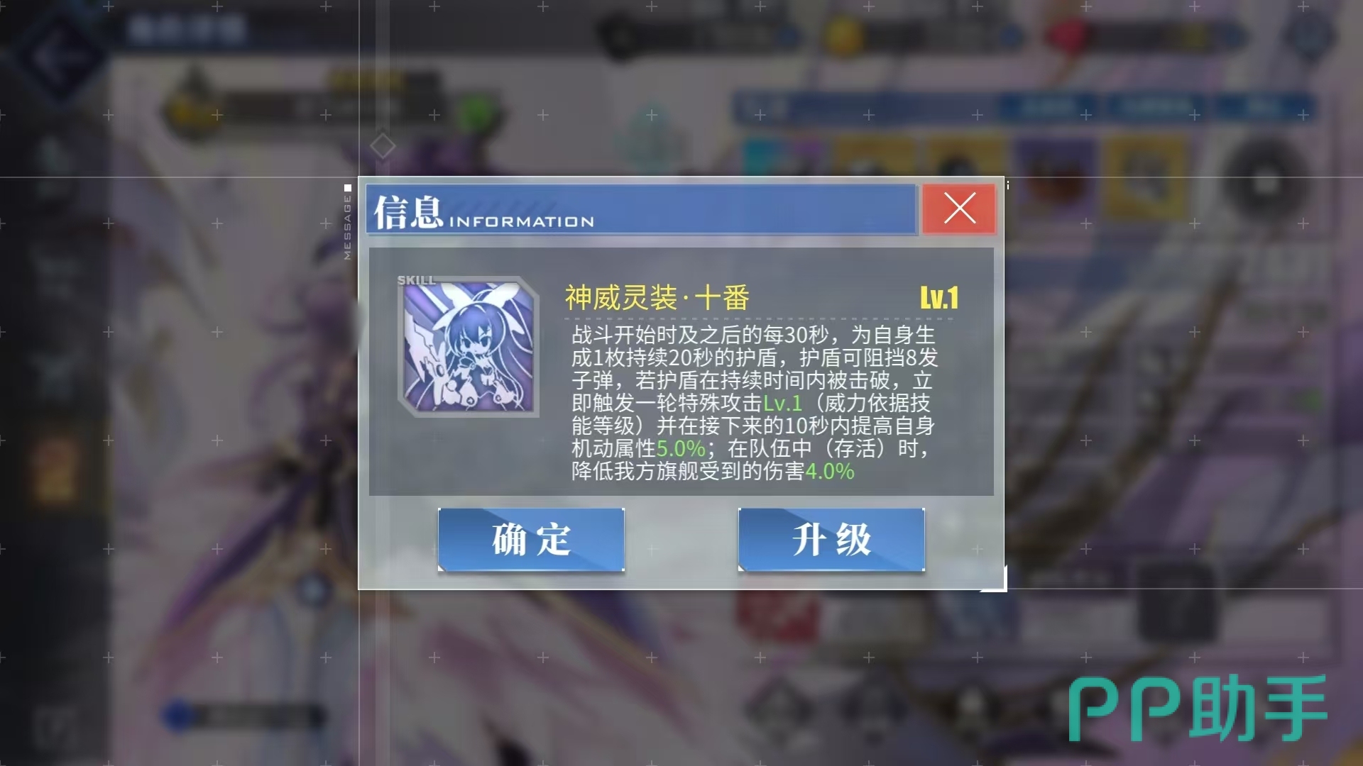 她的二技能专注于战场生存。战斗中,每间隔30秒自动生成一个可抵挡8发子弹的护盾,护盾存在期间完全免疫伤害。护盾破裂时还会为夜刀神十香提供最高15%的机动加成,帮助其规避后续火力打击。更重要的是,只要她仍在战场上,旗舰即可持续享受最多10%的减伤效果,显著提升舰队核心单位的存活率,避免因旗舰被击沉导致任务失败。