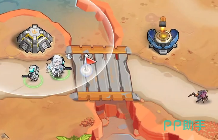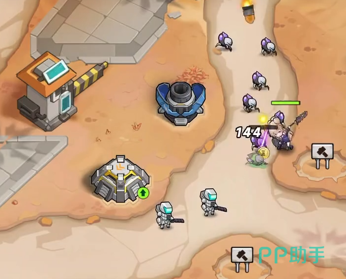 一旦界面提示“HELP”信号,即表示上方区域需要支援,此时派出角色前往处理即可。该阶段敌人数目不多,角色单独作战足以应对。成功抵御第一波后,应在关键位置增设机枪塔,并将角色撤回至机枪塔射程范围内协同防守。因第二波敌人不仅数量增加,且个体血量与防御值均有提升,必须依赖机枪塔的稳定持续输出才能有效遏制攻势。