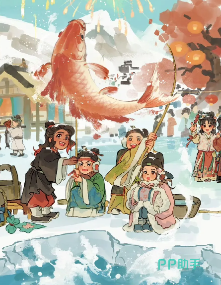 清晨薄雾未散,钟雪渔已立于冰面垂钓台。她动作沉稳,挂饵、抛竿、倚靠、提竿一气呵成,银鳞跃水之声清脆可闻。围观者惊叹于其出鱼频率之高,更有传言称她曾以糖葫芦为饵,引深水锦鲤破冰而出——糖球入口如献珠,被民间视为吉兆。孩童围聚起舞,她静立含笑,仿佛时光倒流,重回旧日温情街巷。