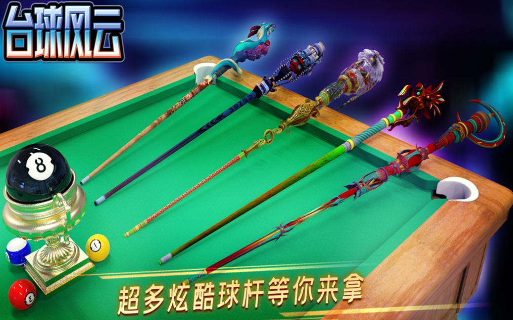 台球风云这款3D双人联机打台球的游戏对战机制公平,打台球的规则简单上手能轻松拿下冠军,多样的PK模式和炫酷球杆等你解锁,升级速度很快可免费解锁众多豪礼,台球的运动轨迹跟碰撞效果呈现真实,细腻的3D场景更给大家一种沉浸于台球厅的感觉,各种专业性很强的台球比赛等待大家参与。