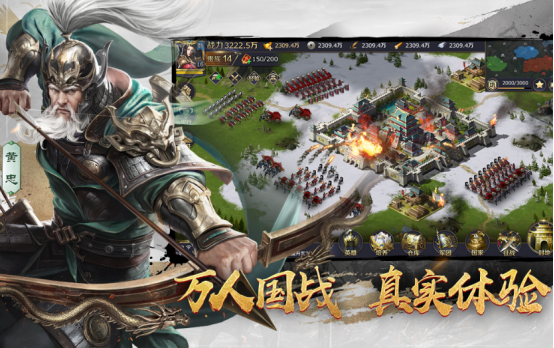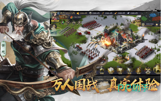 三国大型策略类手游,在三国古战场当中全面开启及时策略对决,可以享受攻城略地的激烈对决,也能感受王朝建立,各种特色玩法尽在指尖让你享受全新的三国。多国争霸,城池争夺,覆盖超过300多座城池有超大地图。玩家可击败无归属的npc占领城池,所占领的领土越多,获得的资源也就更加丰厚。
