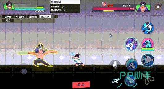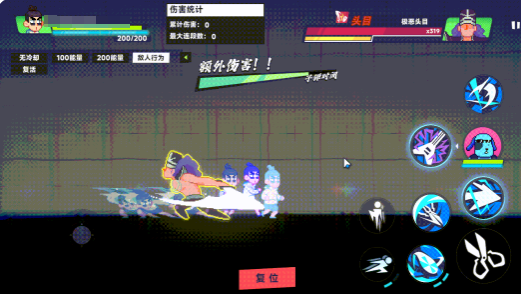 角色基础动作模组统一包含:普通攻击、两个小技能(带独立CD)、一个大招(需气力值充能)、移动、跳跃及闪避。其中普攻段数因角色而异——汪疯为三段连击,伍六七为四段连击,段间衔接流畅度直接影响连段稳定性与硬直压制效果。小技能释放后存在冷却时间,需规划使用节奏;大招不仅依赖CD转好,更需通过战斗中命中敌人或自然恢复来积攒气力值,视觉反馈明确,便于预判释放窗口。