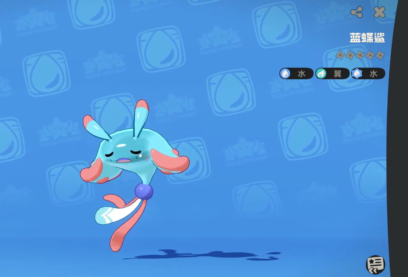 在实战中,蓝蝶鲨本身较少作为主力出场,通常是在进化为彩蝶鲨并完成首领化之后才被编入核心阵容。其特有的“水翼推进”能力,不仅能减少己方技能消耗,还能为战场施加降雨状态。配合求雨类技能,可在雨天环境下实现输出效果翻倍,使其在首领形态下展现出强大的持续作战能力,适用于多种战斗场景,泛用性极强。此外,该精灵对速度属性要求较高,建议玩家在培养前尽量挑选性格加速度的个体,以便在战斗中抢占先机。