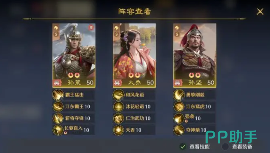 首推“东吴铁三角”组合:大乔 + 孙策 + 孙坚。该阵容成型门槛极低,适配开荒期至游戏中期各阶段。其中,大乔负责持续治疗与群体增伤;孙策作为主力输出,可通过7日登录活动免费获取;孙坚则为零成本赠送武将,承担前排坦控双重职责,有效提升队伍容错率与生存续航。三者协同作战,攻守兼备,是平民玩家过渡阶段的理想选择。