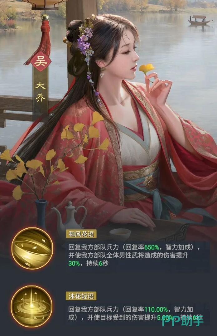 在《九牧之野》中,大乔是兼具治疗与团队增益的高性价比辅助型武将,其怒气技能可为全队男性角色提供30%的输出加成,实战定位清晰、功能不可替代。对于希望快速组建稳定阵容的新手或资源有限的玩家而言,围绕大乔构建核心体系,是提升推图效率与副本通关能力的关键策略。