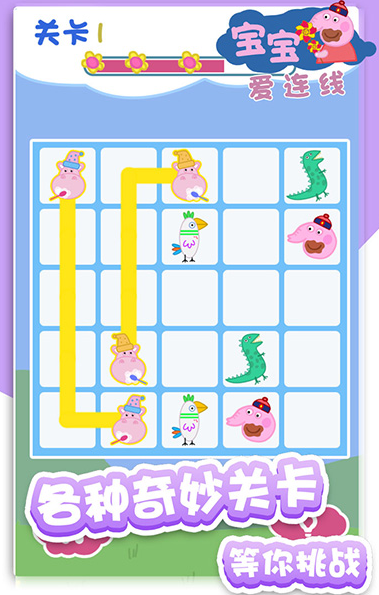 该游戏融合了连线与消除玩法,玩法简单却富有挑战性。玩家需要在规定时间内将相同图案的小怪兽用线连接起来,达成消除目标。随着关卡深入,图案数量和排列复杂度逐渐增加,考验孩子的观察力和反应速度。每完成一关可获得积分奖励,累积高分还能解锁新内容。丰富的任务系统和渐进式难度设计,让孩子在游戏中不断突破自我,享受成就感。