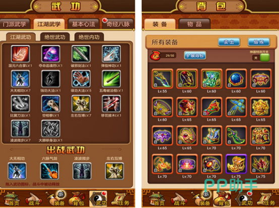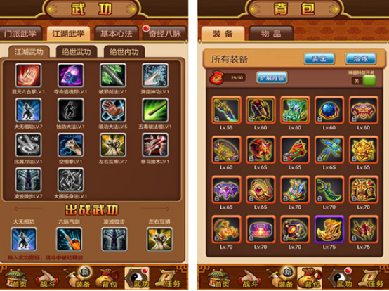 这款同样是以武侠题材为主的游戏,支持挂机,扮演了各种角色以后,可享受所具备的爱恨情仇以及武林争夺时所呈现的打斗场景,涵盖近百种武学绝技,玩家可自由选择。还呈现了在江湖里面的多种流派,你可在仗剑走天涯的过程中,凭借实力,谱写属于自己的传奇故事。还要注重角色的成长以及等级的提升,这样在与其他的玩家战斗的过程中,才能有机会打败对手。