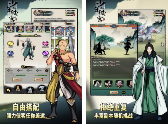 在这款融入了放置挂机玩法的武侠游戏中,精美的画面以及水墨国风的设计,让玩家欲罢不能。进入了游戏所设置的世界以后,你将有机会成为江湖中的侠客,通过自由搭配,任意差遣强力侠客的方式,帮助你获得好的战斗体验。丰富的副本没有任何的重复,所以让你在每次挑战的时候,都有不一样的感受,复古的画面风格,也会给大家带来绚丽的游戏体验。
