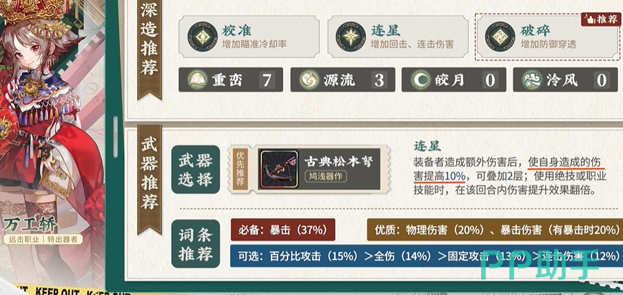 万工轿作为一名远击型器者,以远程输出爆发能力而著称,是团队中不可或缺的C位选择,技能体系围绕着连击和再行动机制展开,为战斗带来了丰富的策略性和操作空间。