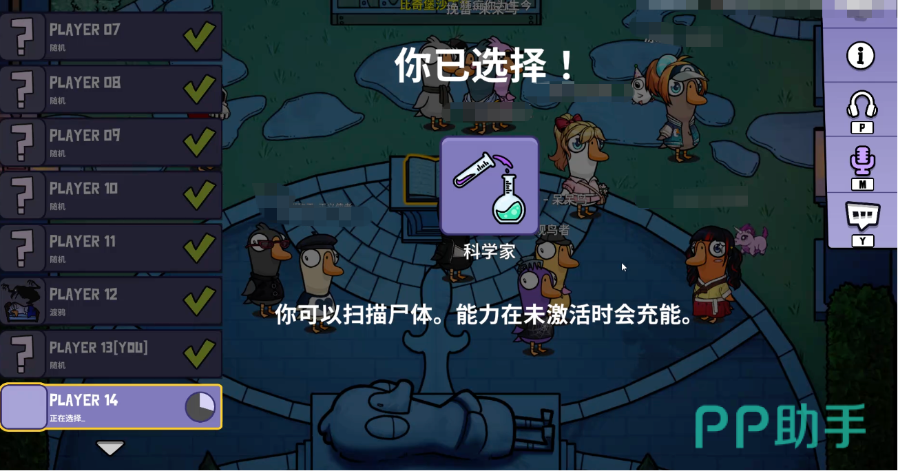 在多阵营对抗中,鹅方属于正义的一方,目标是完成任务或找出潜藏的敌对势力。而科学家正是鹅阵营中极具战略价值的角色。其技能设计偏向信息收集与行为追踪,非常适合喜欢观察细节、擅长逻辑推演的玩家使用。