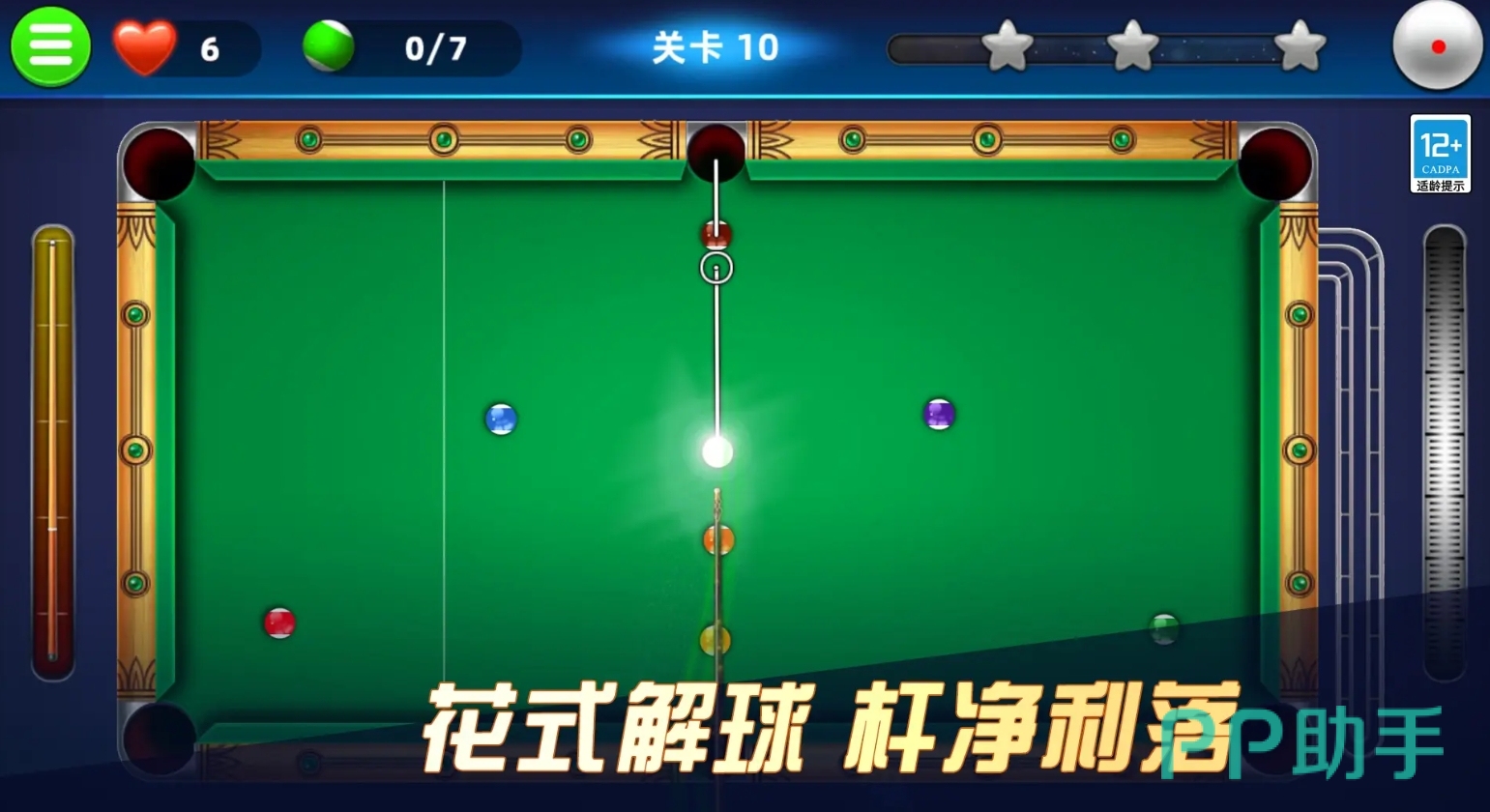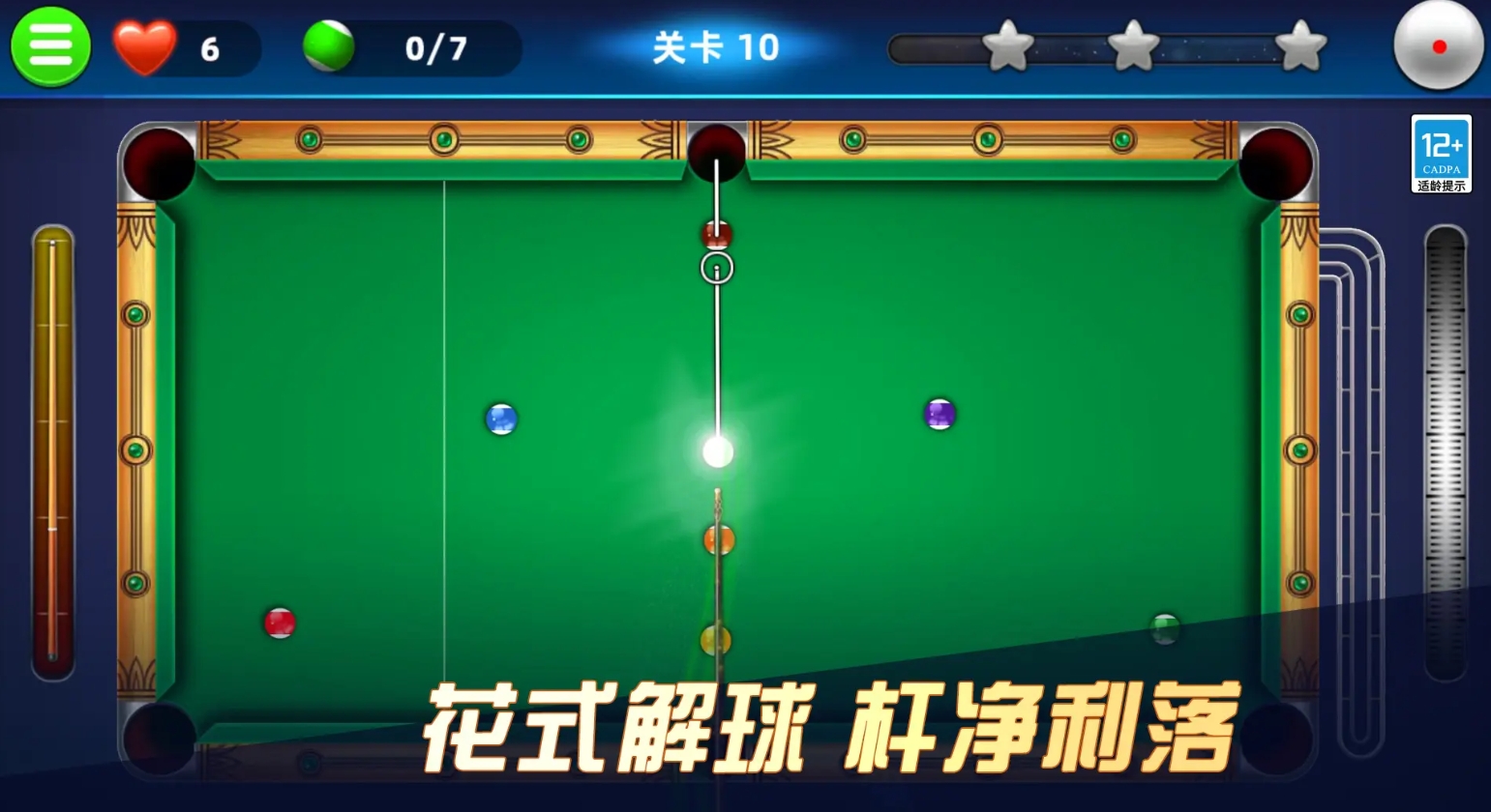 此作既有PVP竞技模式,也能让人们在不同的关卡中通过完成既定的击球目标来实现过关,为不同需求的人们都提供了合适他们的玩法选择。并且当各位在闯关时若是能拿到足够数量的星星,还能开启关卡的奖励宝箱领到更多的游戏资源,用于换购能为自己带来积分加成的道具卡,亦或买下所喜欢的球杆皮肤。在操控上,这款作品也没有太过为难玩家,即时各位之前没尝试过台球游戏,想要入门也十分的轻松。