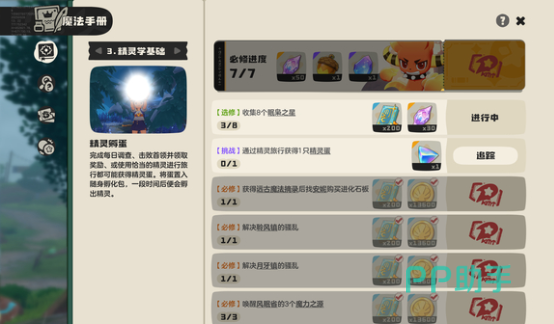 根据任务指引,需修复两座庇护所。其一坐落于魔法师之家附近,另一处已在地图中标明。玩家可根据提示前往目标地点,但部分庇护所周围可能存在障碍物——可可豆。此时需派出精灵将其清除,随后消耗已收集的眠枭之星进行修复操作。整个过程并不复杂,完成后不要立即离开,因为庇护所具备特殊功能:放入果实后可吸引新精灵前来栖息。
