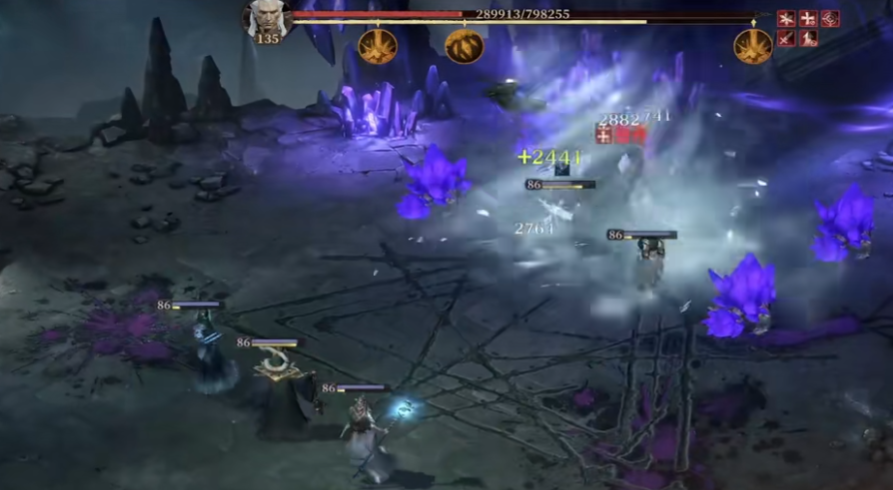 在第二阶段时boss的技能冷却时间会变得更长,当它的血量下降到一定程度时会召唤出两只小怪。其中一只小怪会为它施加无敌的护盾,因此需要优先击杀,另一只小怪则躲在死角很难去直接进行攻击,需要手动操作来慢慢的进行消磨。到了第三阶段的难度就很小了,自动技能就足以应对。