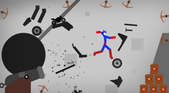 一路狂飙,是一个设定非常有趣的摩托车驾驶游戏,和传统的摩托车驾驶不同,在这个游戏里并不是平坦的赛道,并且玩家最终的目标也不是驾驶摩托车驶向终点,而是需要操控火柴人角色,在高速行驶的过程中坠落,并且在坠落之后被各种弓箭武器攻击的场景,坠落之后,对于摩托车以及火柴人产生的伤害越大,玩家能获得的分数也就越高。