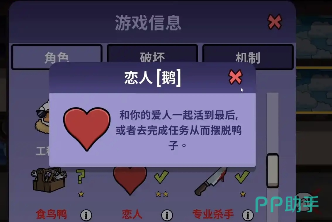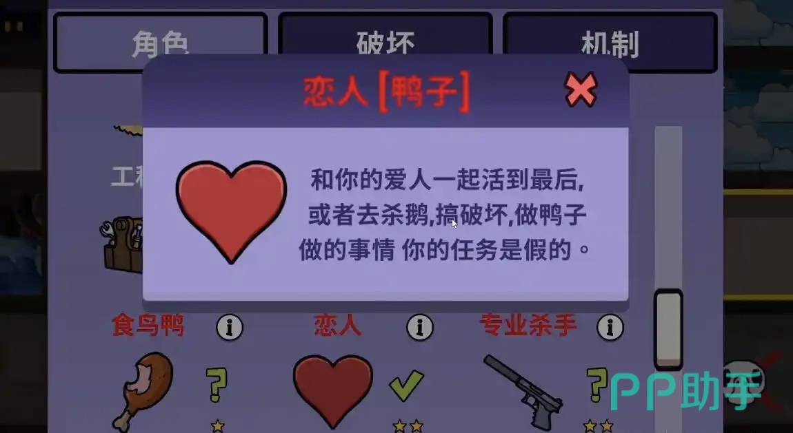 综上所述,关于鹅鸭杀恋人鹅介绍的内容已全面呈现。该角色作为中立第三方势力,强调协作与共存,为游戏增添了更多变数与情感张力。只要两人成功坚持到终局,不论其他阵营胜负如何,都能赢得属于自己的胜利。