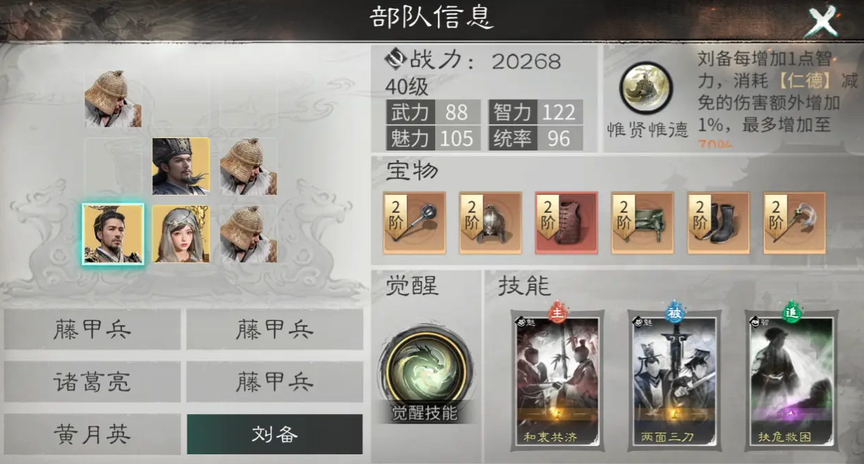 组建凤凰枪队时,刘备是不可或缺的核心辅助。他拥有双追击格机制,能够同时为赵云与庞统提供额外行动机会,显著加快全队技能释放节奏。赵云凭借“七进七出”天赋可频繁触发追击效果,配合层峰叠刃、白虹贯日等高倍率技能,实现连续爆发输出。而庞统则依靠“连环计”打出大范围高频伤害,若再搭配轰雷掣电提升补伤能力,或选择兵不厌诈增强控制链,整体压制力将进一步提升。