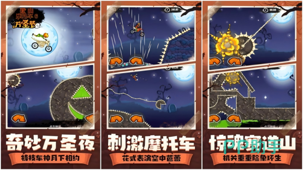 这款万圣节主题的摩托车竞速手游充满新意,构筑出了各种惊险刺激的惊魂赛道,令大家可以在险象环生机关重重的氛围下,展开激烈刺激的竞速挑战,相信一定能够带给大家,无比奇妙独特的游戏体验。此外在《登山摩托车6万圣节》中,还为大家提供了很多型号的摩托车可以选择,同时针对车辆性能还有不少改装玩法可以体验哦。