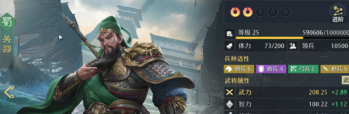 第三席位由关羽担任。其核心优势在于受击增益机制——每次承受伤害均可获得武力值提升,直接强化技能倍率。虽然关羽不具备主动反击能力,但单次技能输出极为可观,足以重创敌方关键单位。需注意的是,其最终武力数值应严格低于赵云,确保赵云始终承担主C定位,关羽则作为高倍率副输出补充打击深度,二者形成“高频反制+重击破防”的互补结构。