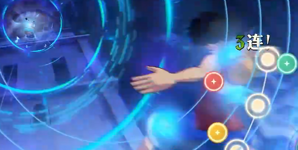 阿保的奥义技首先向前方释放一记强力音波,随后出现特殊声纹提示,玩家需准确点击以激活增益效果,成功响应可显著提升技能总伤害,反之则会导致输出下降。其终结技会对敌方单位施加一次强力爆破打击。而援护技则能为队友提供伤三色音贝增益,同时使范围内敌人陷入沉默状态,无法释放技能。