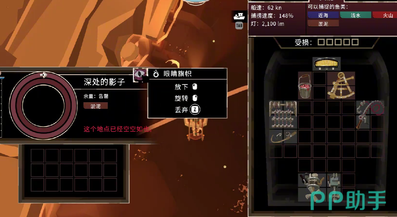 玩家通过望远镜在水面当中,看到一个旗帜形象在漂浮时,就代表水底有眼睛旗帜,玩家直接打捞就可以获得了。