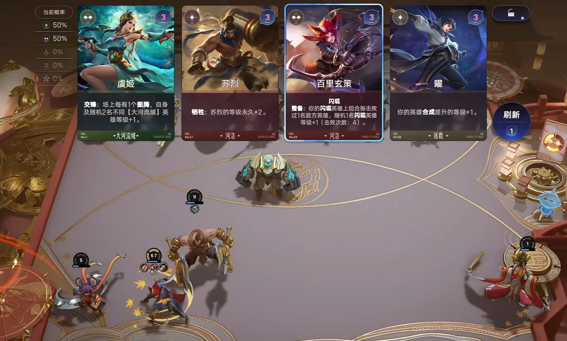 运营节奏需遵循清晰分段策略:开局阶段,在商店优先选取一张一级强力卡(如狂铁或干将莫邪),并立即施加阿离“枫叶舞”完成对应任务,快速解锁阿离技能强化系统;升至二级时,可利用免费刷新机会优化卡池结构;抵达三级后,开始消耗能量进行定向搜卡,此时不仅可激活额外技能槽位,商店刷新概率亦会提升目标卡牌(如玄策)出现频率。拍卖环节中,玄策为首选目标;若暂未出现,则程咬金或铠可作为阶段性替代前排,保障阵容稳定性。