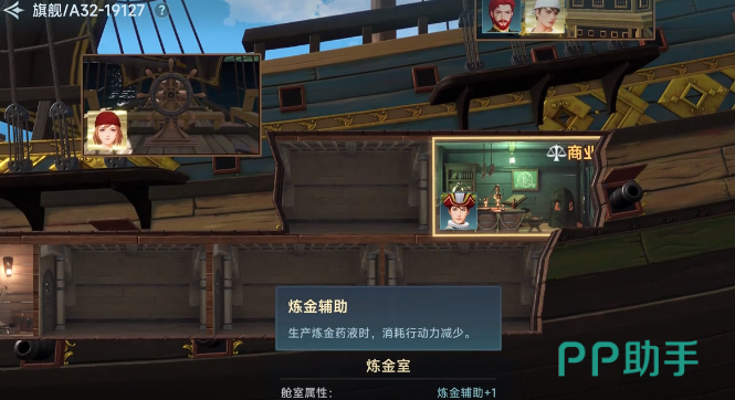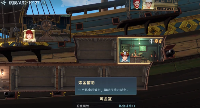 这里先来将护甲板炼金举例说明,所需要的是白色炼金药液,在开始炼金之前就需要换上有炼金室的船。炼金室在制作药液时不会消耗体力,而且还可以额外的获取药液。例如像商业能力比较强的里卡多,还有技能可以额外增加的凯瑟琳都是炼金的好帮手。