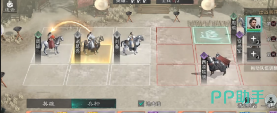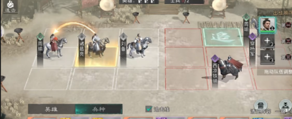 主力武将推荐聚焦高适配性梯队:周瑜(技能型输出)、诸葛亮(群体控制+爆发)、刘备(前排承伤+团队增益)三者具备普适性强、养成成本低、阵容容错率高的共性优势。兵种配置需严格遵循武将定位——例如周瑜依赖技能命中频率与释放节奏,应搭配弓兵或轻骑类高移速兵种;而刘备作为盾系核心,则需重步兵或枪兵提供前排压制与反制能力。兵种与武将特性错配将直接导致技能空转率上升、伤害衰减超20%,务必在确认出征前查阅武将详情页中的“兵种加成说明”模块。