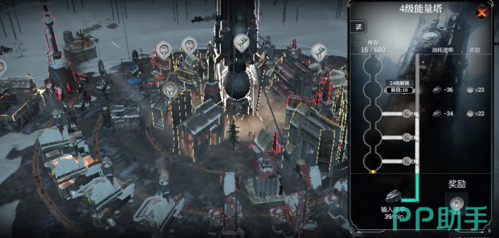 开局务必选择“方舟”模式的最低难度(简单难度),此模式下无需保证城市全员存活,只需完成曼彻斯特救援任务即可通关。进入游戏后,优先研究“炭窑”科技树(第三层科技),完成后立刻在能量塔附近建造第一座炭窑。注意:游戏允许建造多座炭窑,但禁止建造任何采煤机或煤矿。初期预留15名工人专职负责炭窑运作,剩余人力分配至木材采集站和猎人小屋。