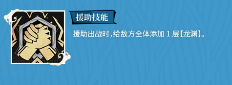 援助位配置进一步拓展其战术维度:当敖烈处于援助位且场上存在空位时,友方每释放5次言灵,他将自动登场,立即触发“法力爆发”及言灵追加效果,随后返回援助位;每次援助登场同时为全体敌人施加1层“龙渊”。该机制使其援助存在感极强,兼具高频干扰、稳定叠层与定点爆发三重价值。