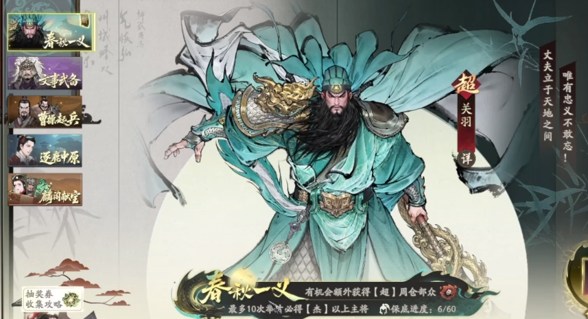 关于三国望神州新手池的内容就介绍到这里。新手卡池涵盖全部可获取角色,推荐玩家进入游戏后优先在此池内抽取。完成指定抽取次数后将自动转入常规卡池。常规卡池同样设有80抽保底机制,确保玩家在持续抽取过程中能够稳定获得高强度武将,助力征战三国乱世。