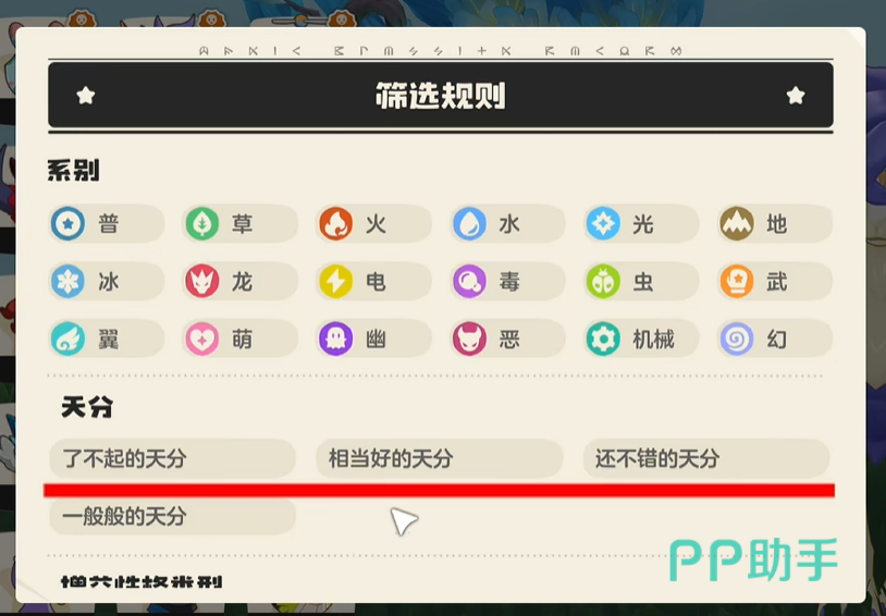 当前游戏中共设有四种天分等级:了不起的天分、相当好的天分、还不错的天分以及一般般的天分。当你通过任务奖励或野外捕捉获得一只新精灵时,可以立即进入它的属性界面查看具体评级,该信息通常显示在右侧区域。其中,“了不起的天分”是目前最稀有且最优的评级。若你有幸获得此类精灵,尤其是主攻输出定位的角色,强烈建议优先投入资源进行培养。对于刚起步的玩家来说,不妨暂缓升级低天分精灵,耐心等待高天分目标出现后再集中养成。