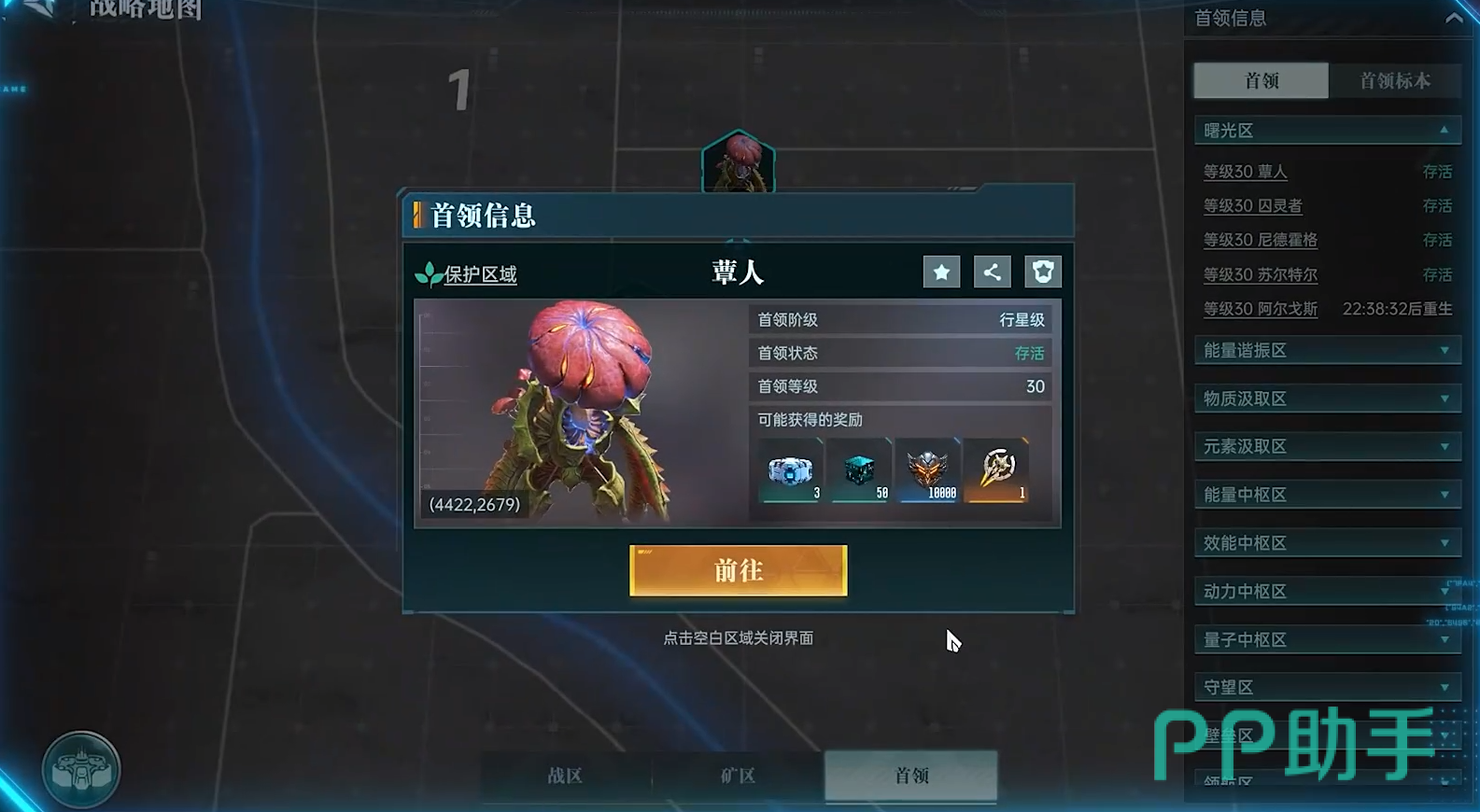 胖蕈人属于S2赛季专属世界首领,仅在壁垒区、曙光区、领航区与守望区四大初始地图中刷新。该Boss具有明确的势力归属设定——仅对应势力的指挥官可对其发起攻击,其他势力单位无法造成伤害。在战略地图界面中,通过缩放操作即可在界面底部调出“世界首领”功能入口;切换至该面板后,可实时查看各区域首领分布状态及当前存活情况。