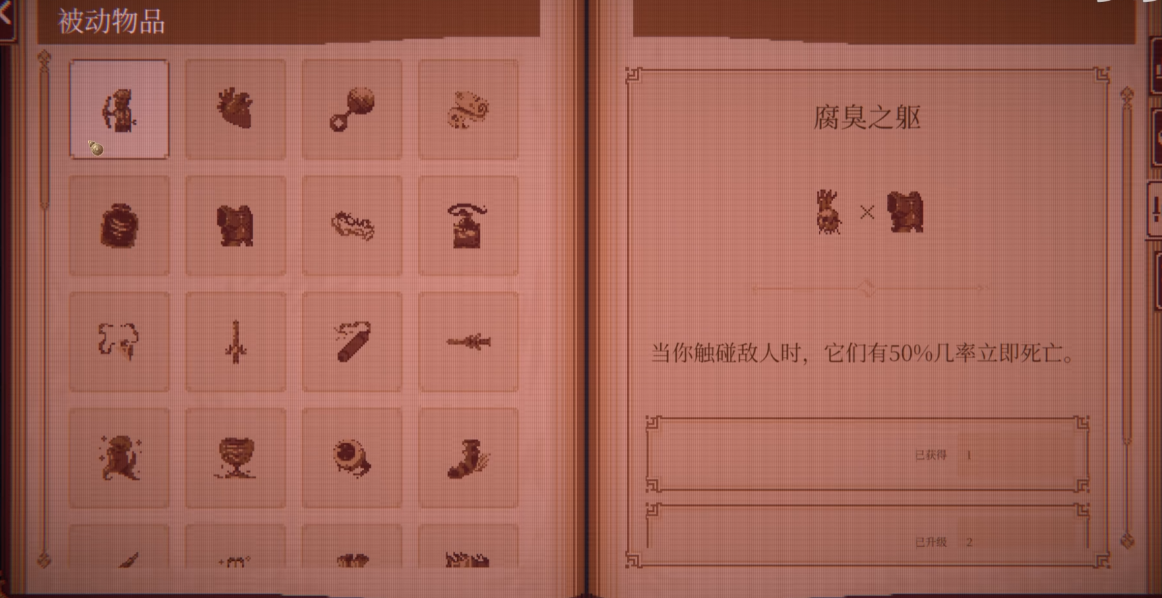专注近战爆发的玩家可重点关注“腐臭之躯”。该道具赋予角色接触即死能力:与敌人发生碰撞时,有50%概率无视目标当前生命值与防御属性,直接判定击杀。该机制在对抗高血量精英单位及BOSS时尤为突出,大幅压缩高强度战斗的容错窗口。尽管存在概率波动,但其带来的战术奇效——如关键节点瞬间减员、打断敌方技能释放节奏等——使其成为高风险高回报构筑中的核心变量。