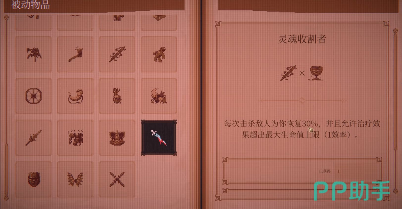 续航向构筑的核心保障是“灵魂收割者”。其效果为:每次击杀敌人,恢复自身30%最大生命值;且治疗量可突破生命上限,超额部分自动转化为等额临时护盾。该机制将战斗行为与生存资源深度绑定,只要维持稳定击杀频率,即可持续积累护盾厚度,形成动态防御屏障。在高密度弹幕环境下,该道具显著降低操作失误导致的非致命伤害累积风险,真正实现“以战养战”的可持续作战闭环。